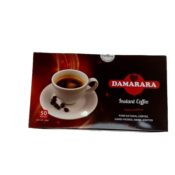 Damarara Instant Coffee Sachets offer the perfect blend of convenience and quality. Each box contains 50 individual servings of rich, aromatic coffee, made from pure natural beans, carefully hand-picked and hand-sorted for premium taste. Ideal for travel, office, or home use, these sachets make it easy to enjoy a smooth and flavorful cup of coffee anytime, anywhere. The stylish packaging reflects Damarara's commitment to elegance and excellence, with every cup delivering the brand’s signature taste: Pure & Elegant.