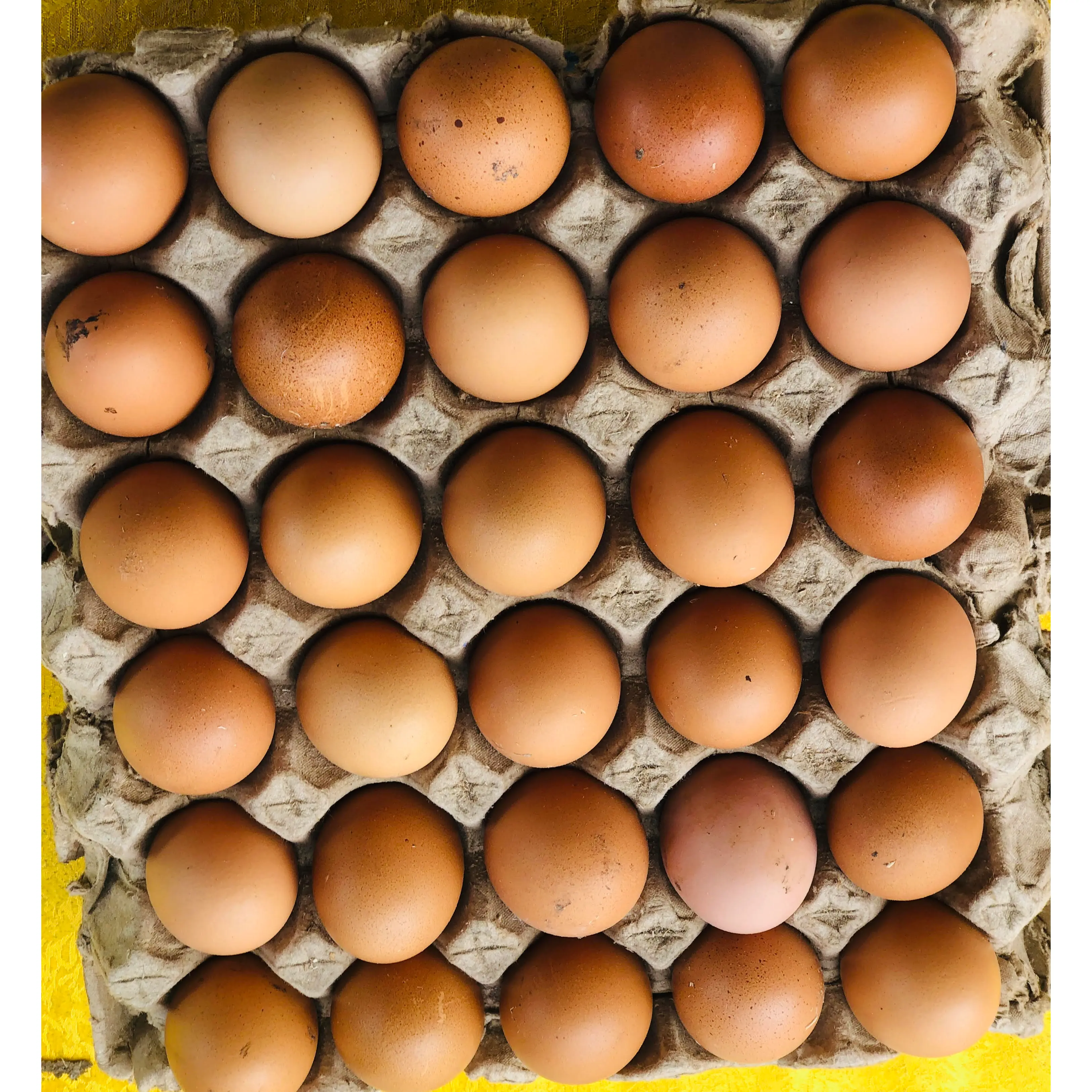 Eggs are oval-shaped, nutrient-rich food laid by birds, especially hens. They have a hard outer shell, a clear egg white, and a yellow yolk inside. Eggs are a good source of protein, vitamins, and minerals, and are commonly used in cooking and baking around the world.