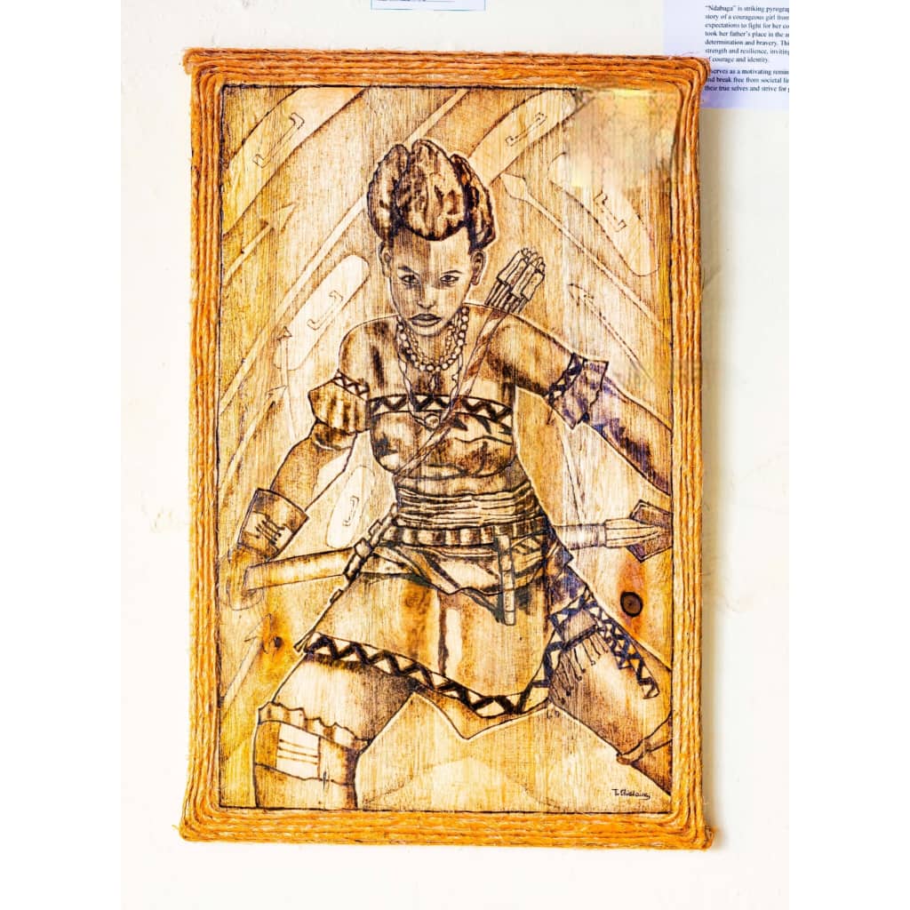 Ndabaga art, is inspired by the Rwandan heroine who symbolizes courage, strength, and breaking barriers.Â